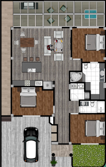 ¿Familia moderna? Casa Almanzilia posee una distribución eficiente en un ambiente simplificado y práctico. Las actividades convergen un eje central que permite una circulación funcional en una sola planta.